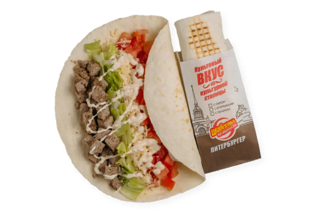 Сочный рубленый бифштекс, картофель фри, свежие томаты, перец халапеньо, маринованные огурчики, нежный салат айсберг с фирменным соусом — в хрустящем лаваше.